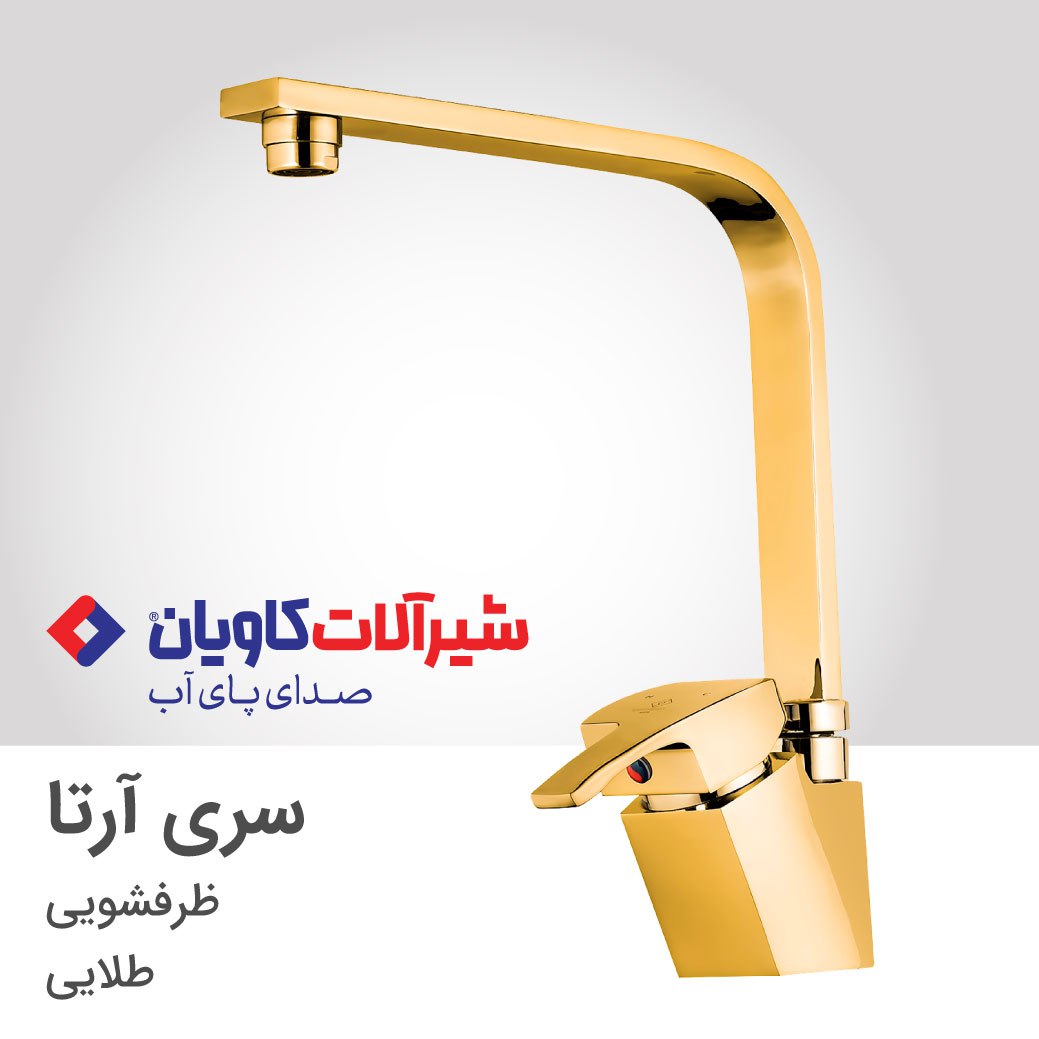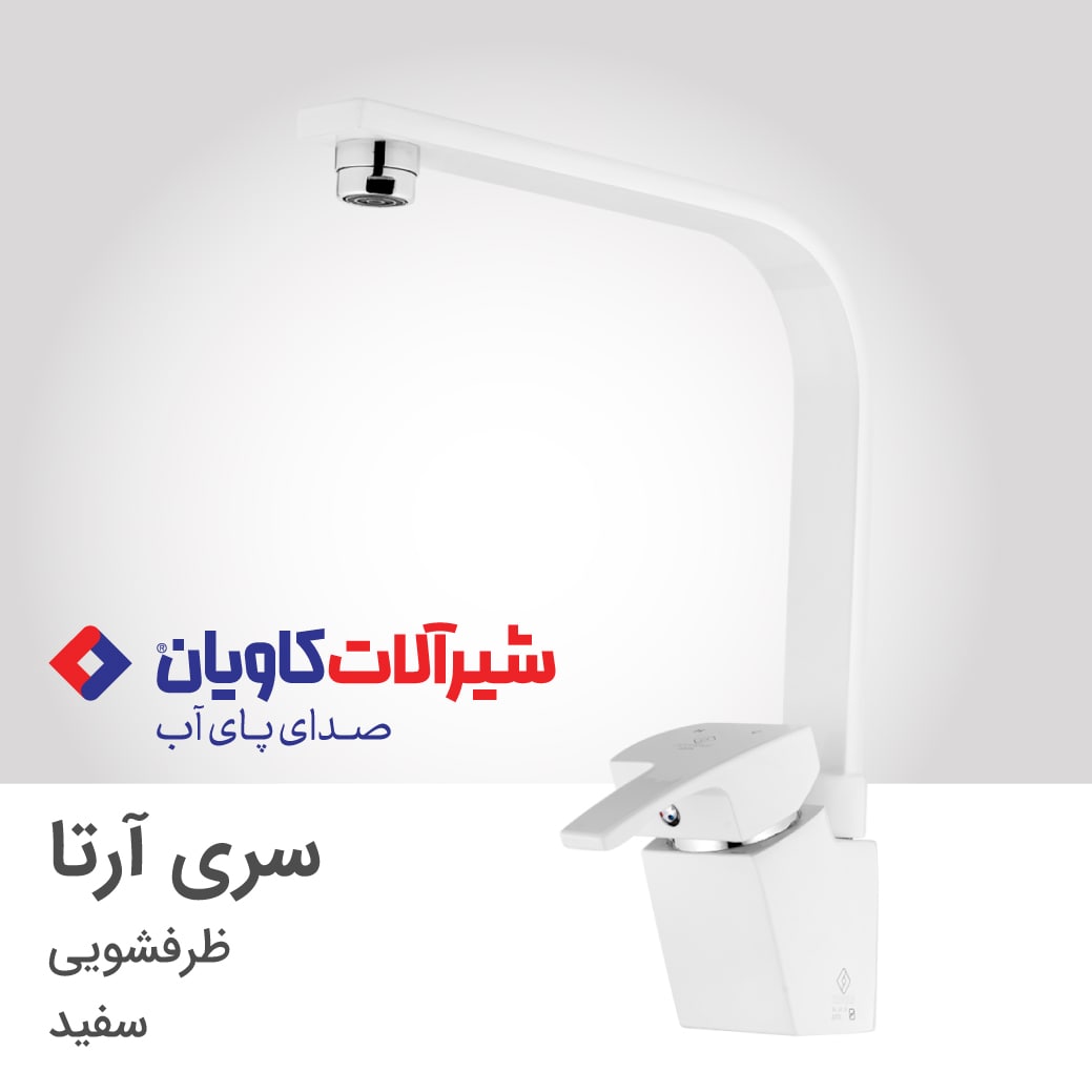 ست شیرآلات آرتا اولین طرح انحصاری شیرآلات کاویان است که در سال 1390 طراحی و تولید شد. جنس شیر ظرفشویی آرتا مانند سایر شیرآلات شرکت کاویان، آلیاژ برنج با سرب کمتر از 2.5% و مطابق با شیرآلات استاندارد جهانی است. به دلیل فرم 90 درجه علم ظرفشویی آرتا، فضای زیادی برای شستن ظروف بزرگ خصوصاً در سینک های کاسه دار فراهم می آورد. قیمت شیر ظرفشویی آرتا با توجه به وزن بالای آن و انحصاری بودن طرح آن در مقایسه با سایر شیرآلات بازار بسیار مناسب است. این شیر ظرفشویی دارای 5 سال ضمانت و خدمات پس از فروش است.