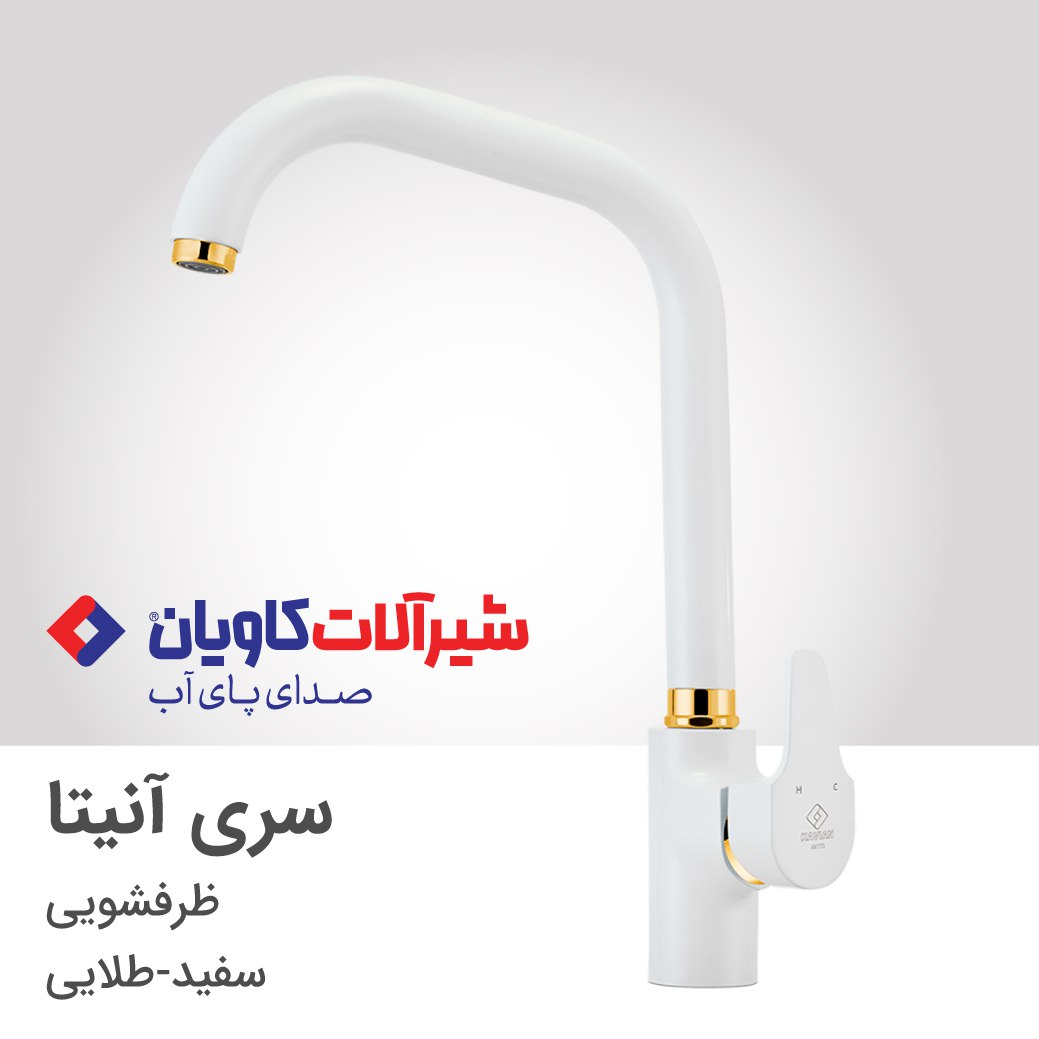 شیر ظرفشویی آنیتا در سال 1391 طراحی و بصورت انحصاری ثبت شد. مدل آنیتا، طرحی مینیمال دارد و در گروه شیرآلات تنسو قرار می گیرد. در این شیر آشپزخانه از گوشه ها و زوایای تیز پرهیز شده و مانند سایر شیرآلات تنسو یاد آور حجم هندسی (بطور خاص استوانه) است. قیمت شیر ظرفشویی آنیتا با توجه به انحصاری بودن طرح و کیفیت ساخت آن بسیار مناسب تعیین شده و شیر سینک آنیتا از شیرآلات پرفروش کاویان است. علم استوانه ای و بلند این شیر آشپزخانه در کنار دسته ظریف آن فضای کافی برای شستن ظروف بزرگ فراهم می کند.