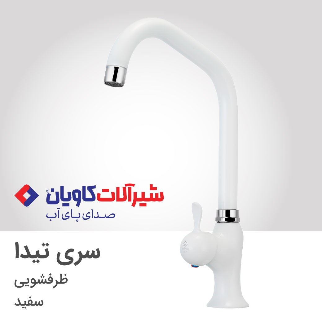 مدل تیدا از پرفروش ترین شیرآلات کاویان و از بهترین شیرآلات ایرانی است. ظرافت تنه در کنار علم بلند و متناسب شیر ظرفشویی تیدا، آن را انتخاب مناسبی برای آشپزخانه هایی با هویت خاص می سازد. استفاده از تجهیزات کاهنده مصرف آب و کارتریج مناسب در کنار طراحی انحصاری تیدا، آن را به زیباترین و در عین حال کاربردی ترین شیرآلات تبدیل کرده است. این شیر آب کم مصرف از نظر فشار آب هیچ مشکلی برای کاربر ایجاد نمی کند چرا که پرلاتور یا همان سر شیر کاهنده مصرف آب، فشار مناسب آب را تامین می کند. پیش از خرید شیرآلات آشپزخانه بهتر است نکات مهم در زمینه انتخاب بهترین شیرآلات را مطالعه کرده و صرفاً قیمت شیر ظرفشویی ارزان را مد نظر قرار ندهید.