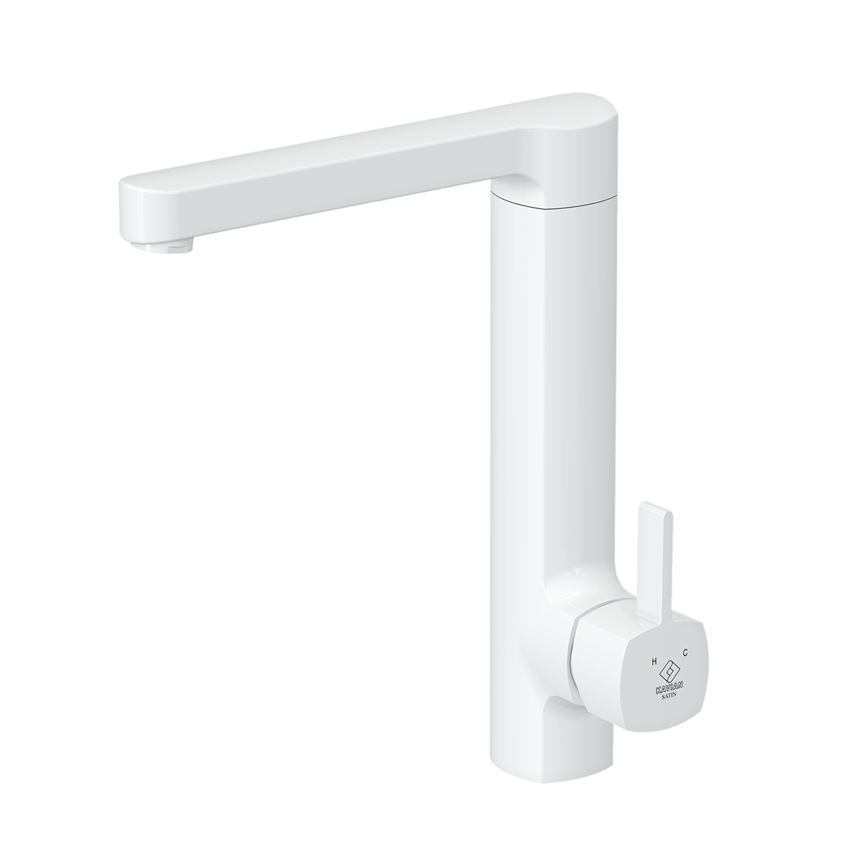 بلند بالا و در عین حال بسیار ظریف. این شیر ظرفشویی ظریف و مینیمال می تواند تکمیل کننده دکوراسیون مدرن آشپزخانه شما باشد. عَلَم شیر آشپزخانه ساتین بر خلاف شیرآلات ظرفشویی معمول در بازار دارای قابلیت چرخش 360 درجه روان و بدون لقی بر روی محور افقی خود است. این چرخش 360 درجه از محل اتصال آبریز به محور عمودی علم انجام می گیرد و باعث سهولت شستشو خصوصاً در سینک ها ظرفشویی جزیره ای می شود. علم این شیر سینک کارتریج 35 با استفاده از فرایند هیدروفرم از آلیاژ برنج استاندارد تولید می شود و بدنه شیر ظرفشویی ساتین طی فرایند ماشین کاری آلیاژ برنج توپُر به وسیله ماشین آلات CNC پدید می آید. علاوه بر این فرم دسته خاص آن نیز بسیار جالب توجه است.
